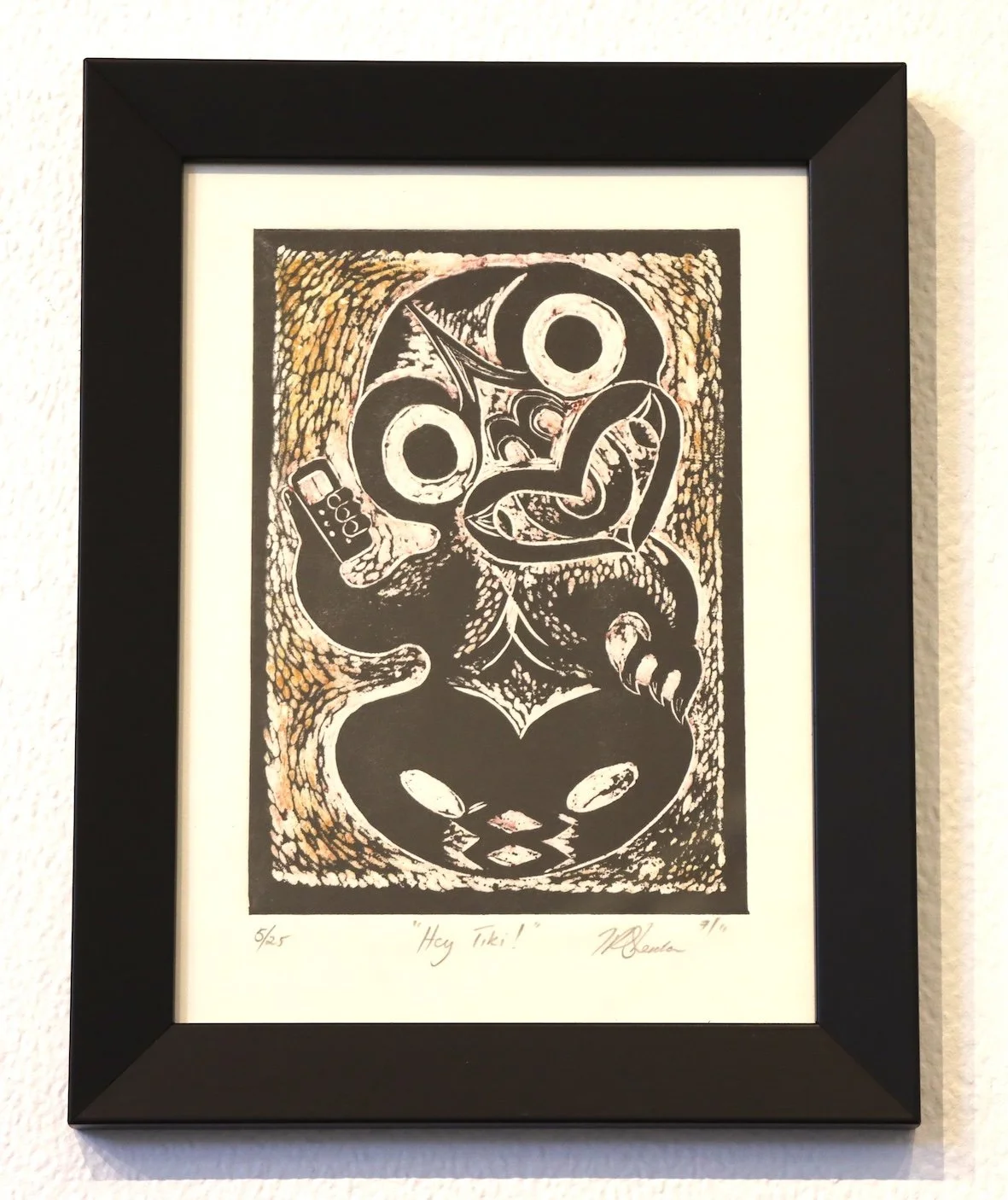 Description - Finding a piece of soft perspex suitable for relief work I created Hey Tiki. Here, Tiki is rallying their fellow tiki tribal members, seeking support for losing control over their cultural identity. Tiki has been appropriated in just about every capacity you can identify and this work is a play on that.